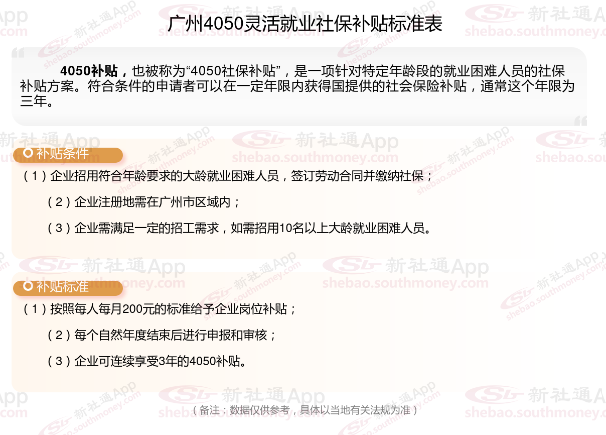 以上就是广州4050灵活就业社保补贴的相关内容,欢迎关注新社通/下载新社通APP了解更多五险一金专业资讯。