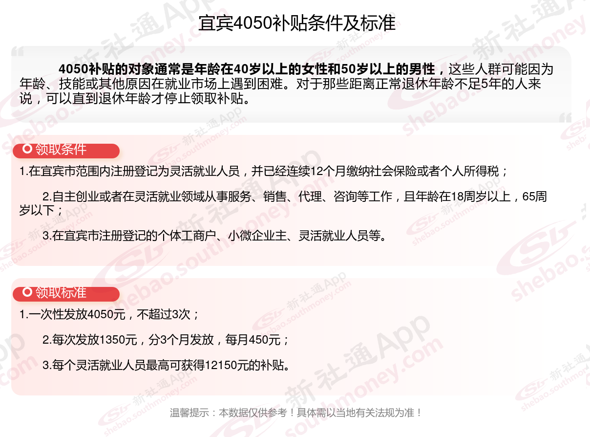 2024宜宾灵活就业4050社保补贴是一项面向特定年龄段的就业困难人群的社会保险补贴。