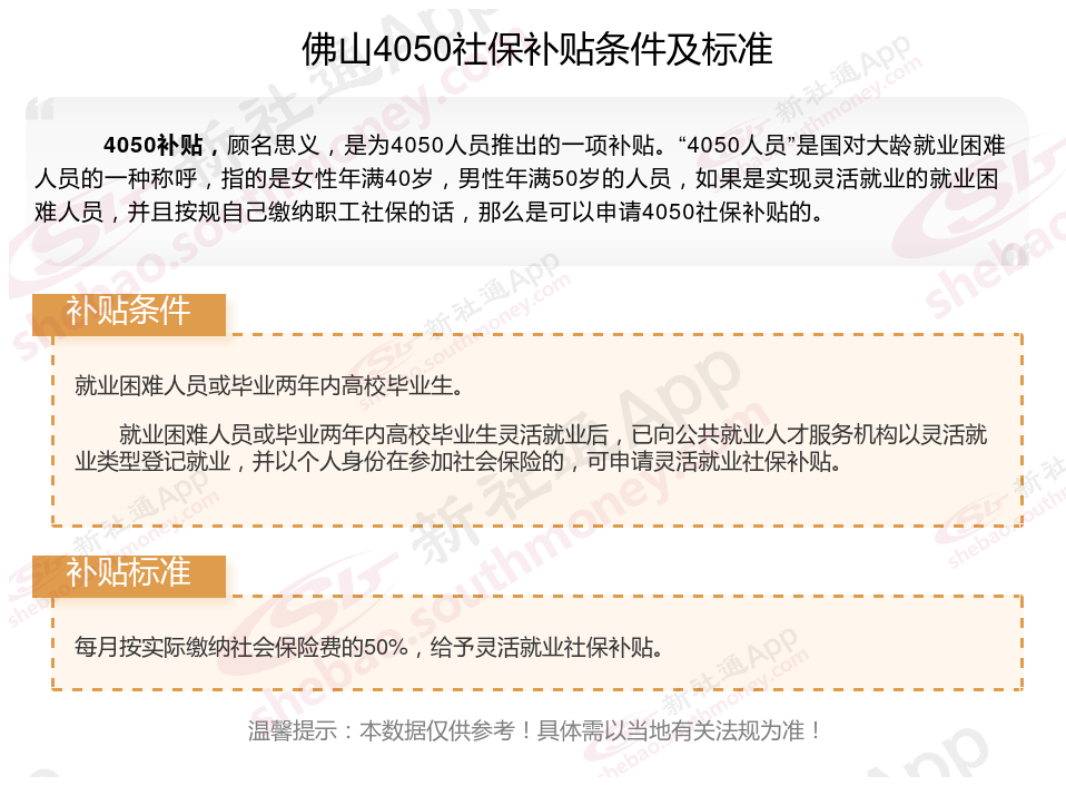 一、2023-2024年佛山4050社保补贴标准及条件,最新如下