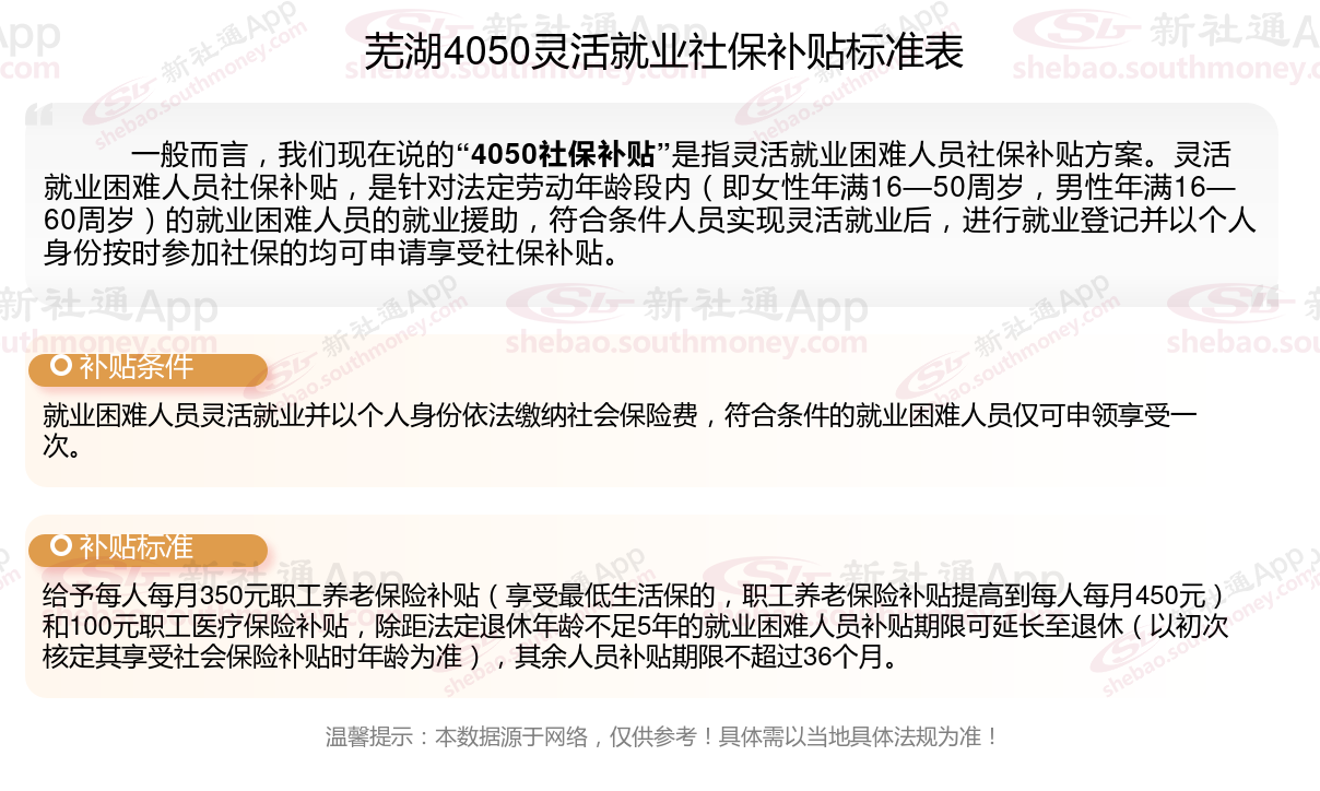 以上就是芜湖4050灵活就业社保补贴的相关内容,欢迎关注新社通/下载新社通APP了解更多五险一金专业资讯。