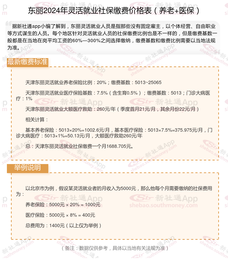 一、2024年东丽灵活就业社保缴费标准表 东丽灵活就业社保多少钱一个月?