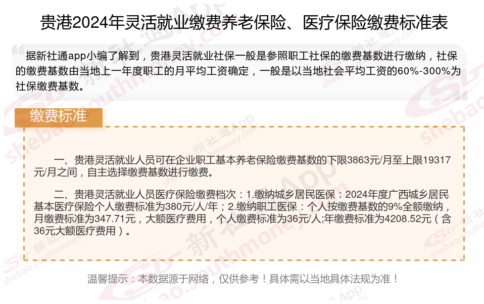 二、贵港2024年灵活就业社保缴费基数、比例最新消息