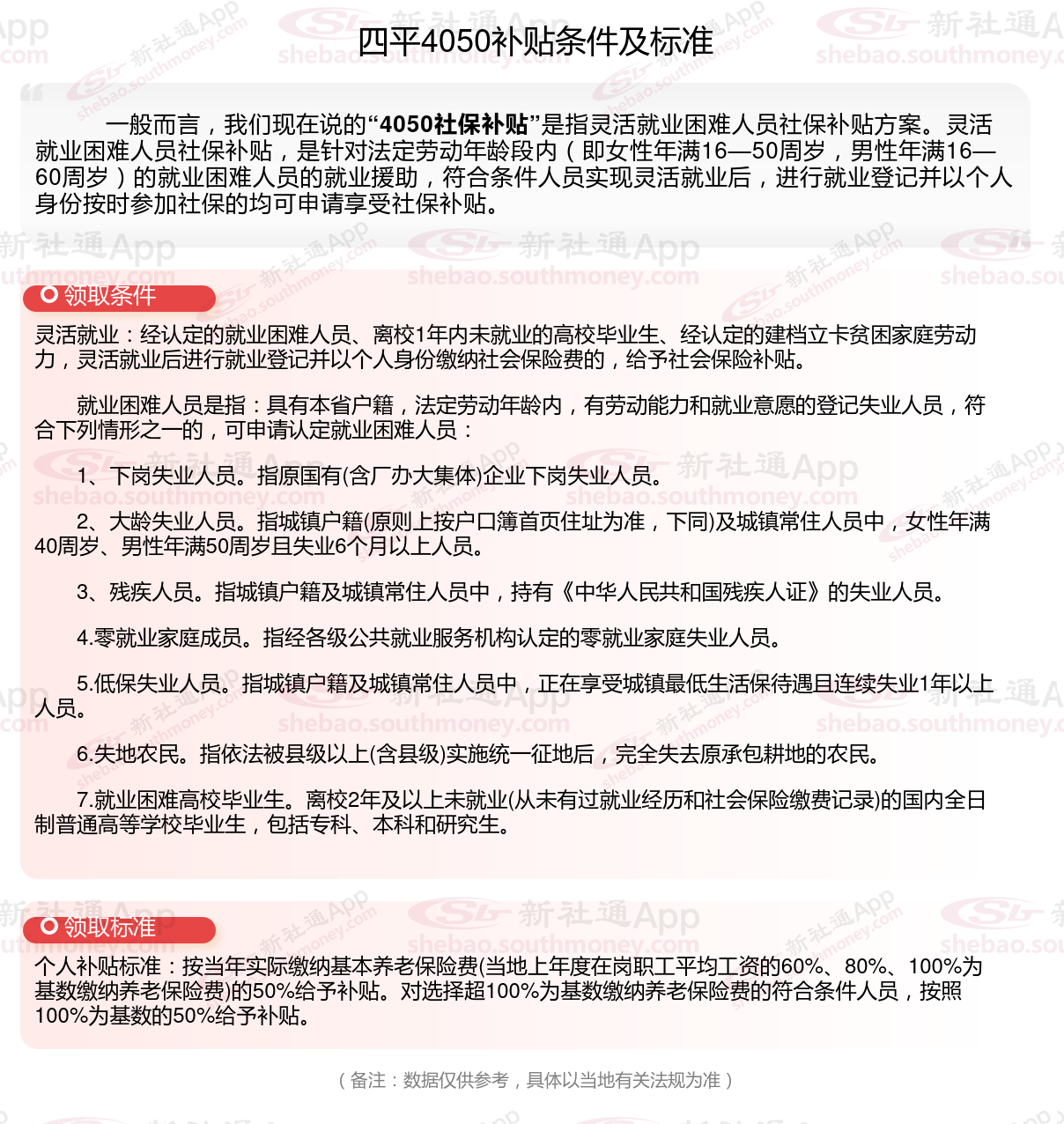2024四平灵活就业4050社保补贴是一项面向特定年龄段的就业困难人群的社会保险补贴。