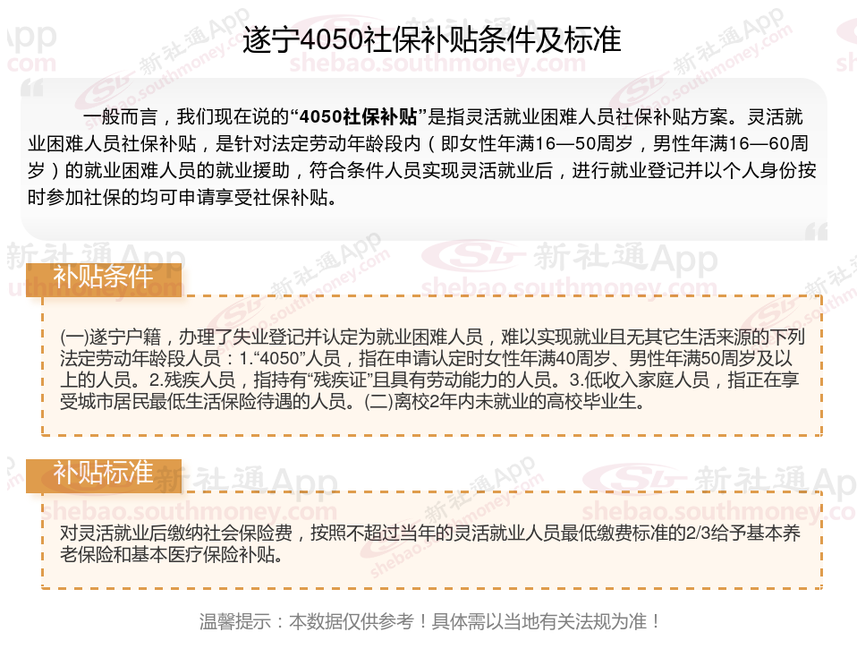 一、遂宁4050社保补贴标准及条件2023-2024年