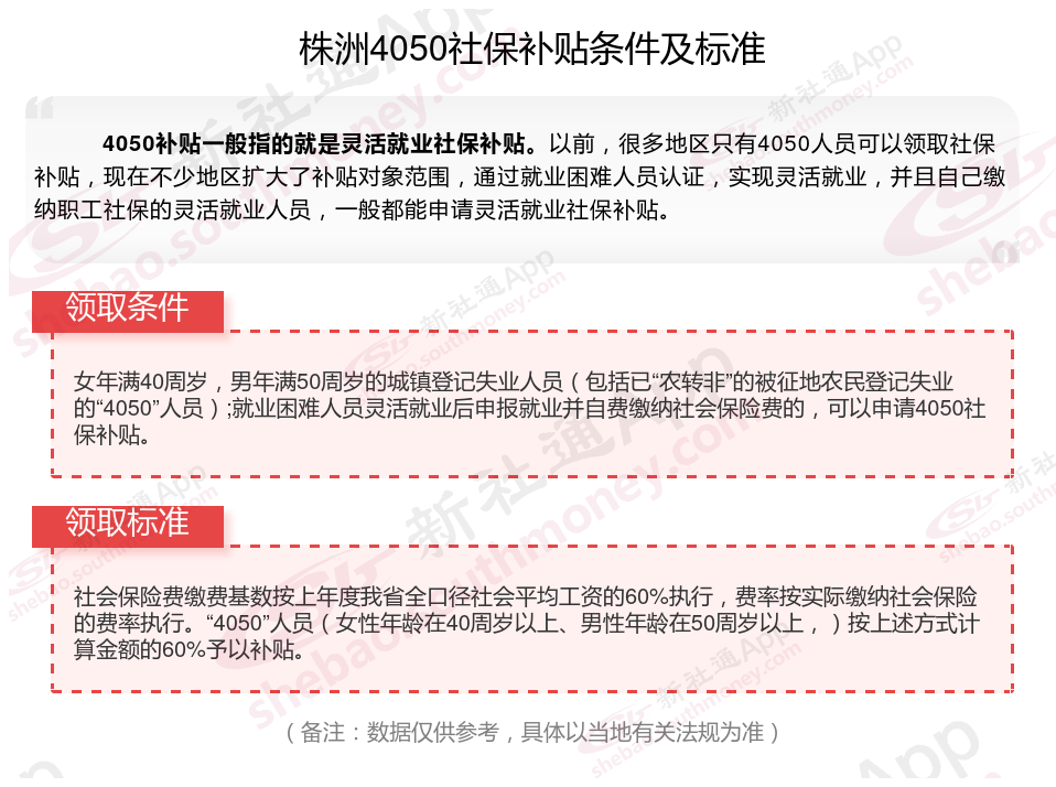 二、株洲4050社保补贴标准及条件2023-2024年,最新如下