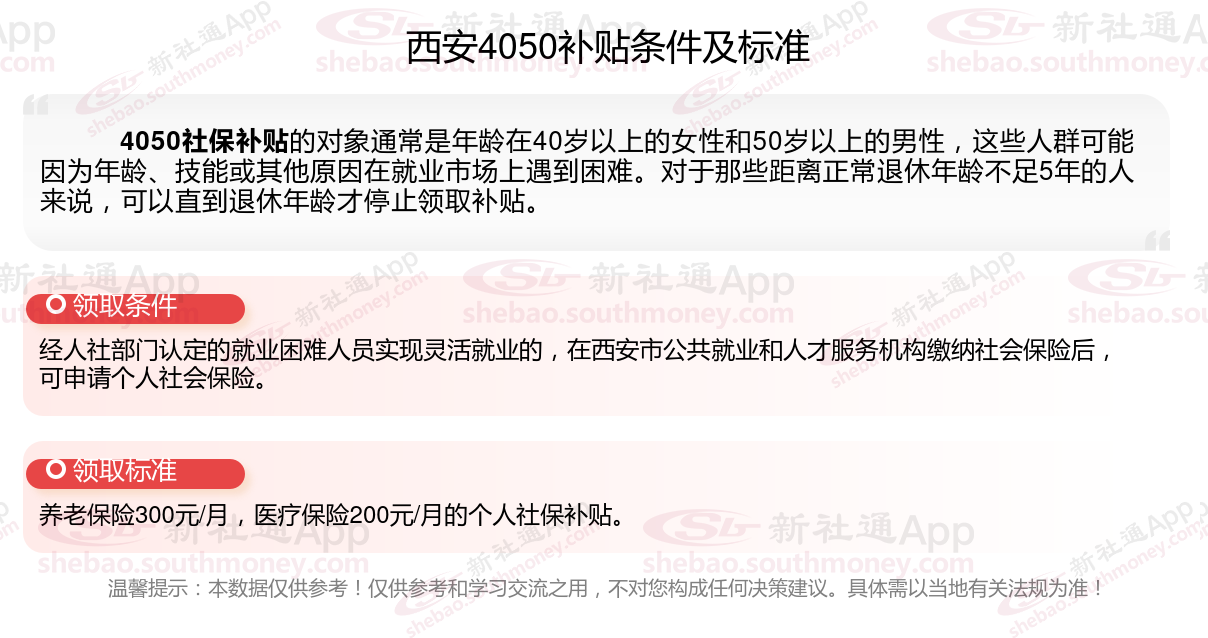 2024西安4050补贴主要针对的是年龄在40岁以上的女性和50岁以上的男性,这些人群通常因为年龄较大而面临就业困难。