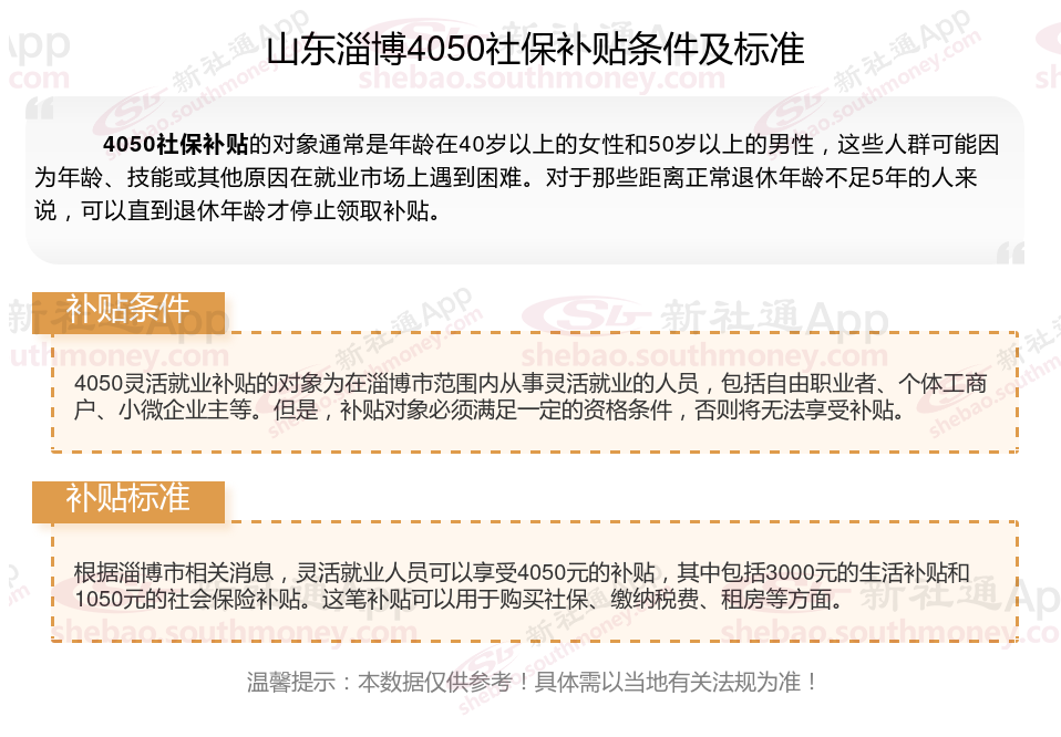 二、山东淄博4050社保补贴标准及条件2023-2024年