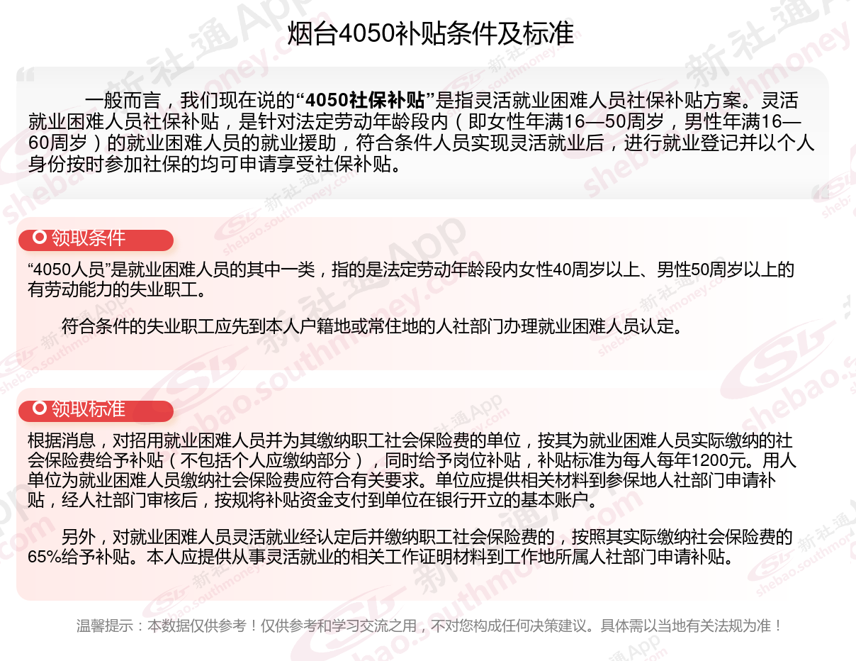 2024烟台灵活就业4050社保补贴是一项面向特定年龄段的就业困难人群的社会保险补贴。