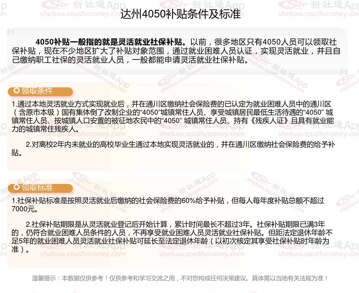 以上就是达州4050灵活就业社保补贴的相关内容,欢迎关注新社通/下载新社通app了解更多五险一金专业资讯。