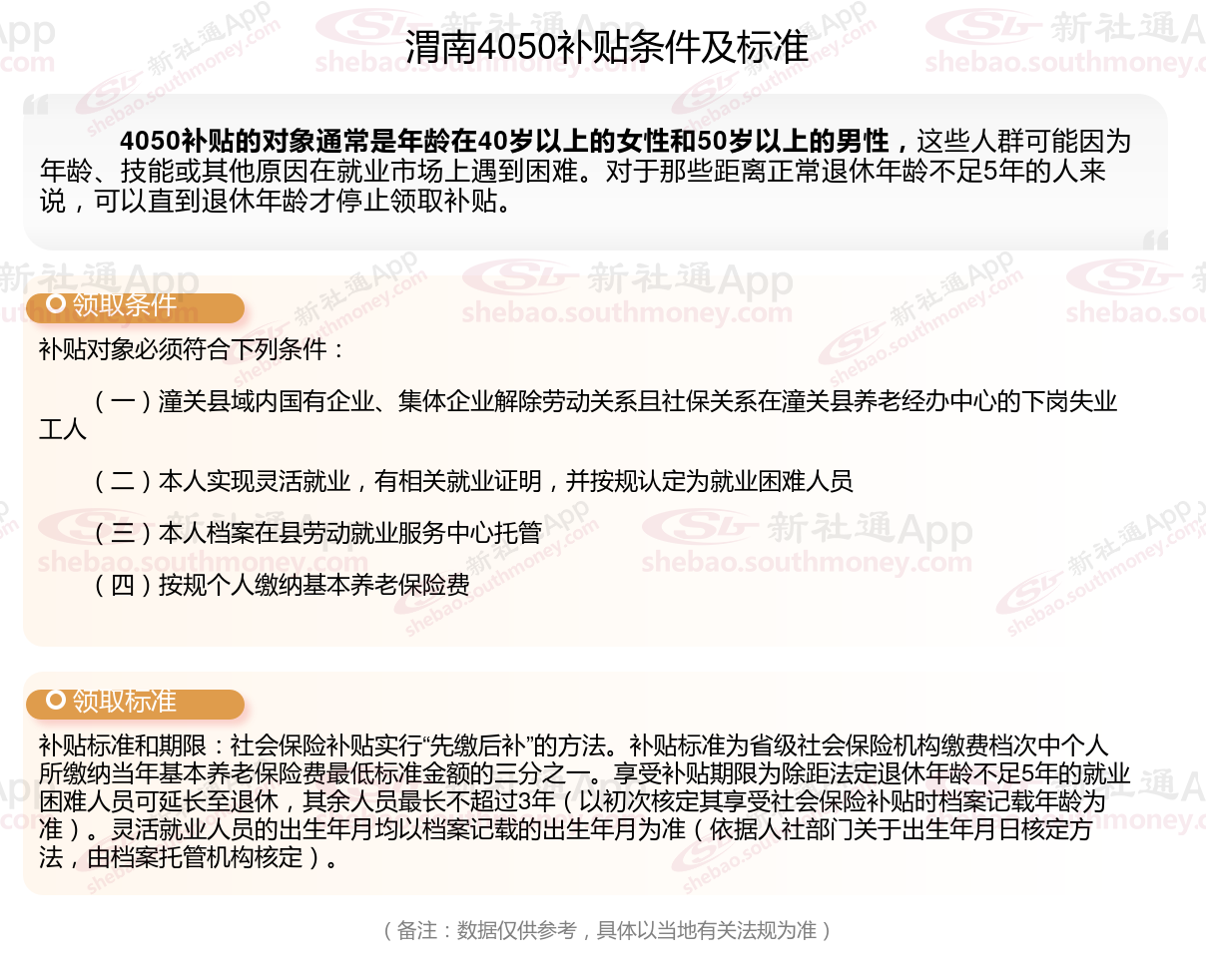 “4050人员”是国对大龄就业困难人员的一种称呼,指的是女性年满40岁,男性年满50岁的人员,那么渭南4050灵活就业社保补贴标准是多少钱?渭南4050社保补贴条件是什么?接下来随新社通APP小编了解一下最新资讯。