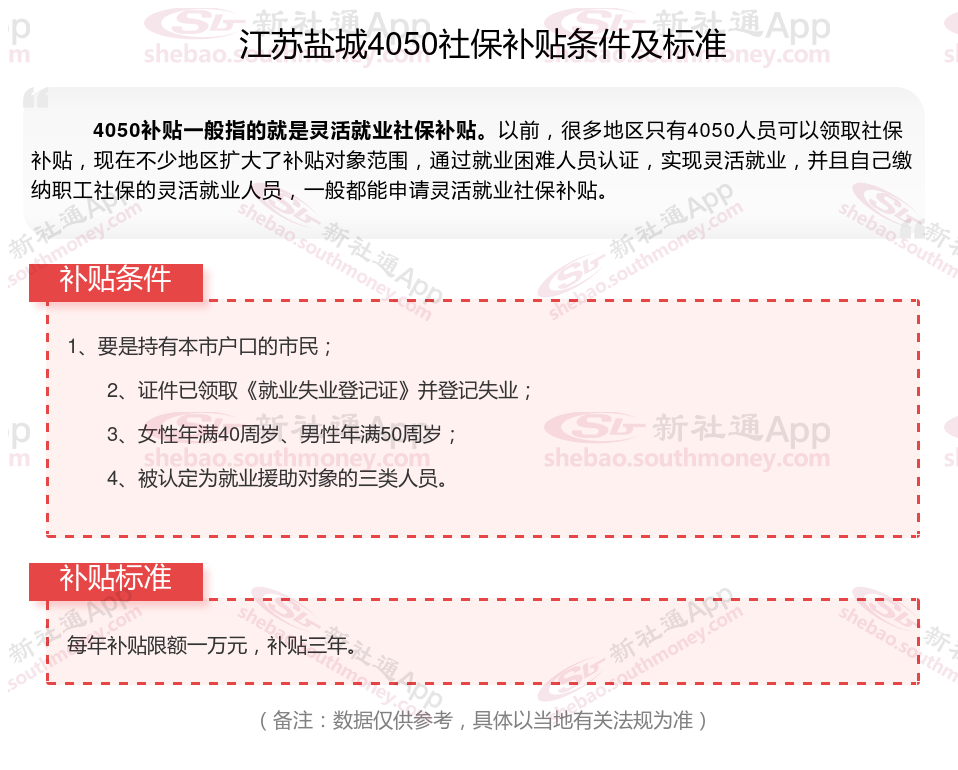 一、2023-2024年江苏盐城4050社保补贴标准及条件,最新如下