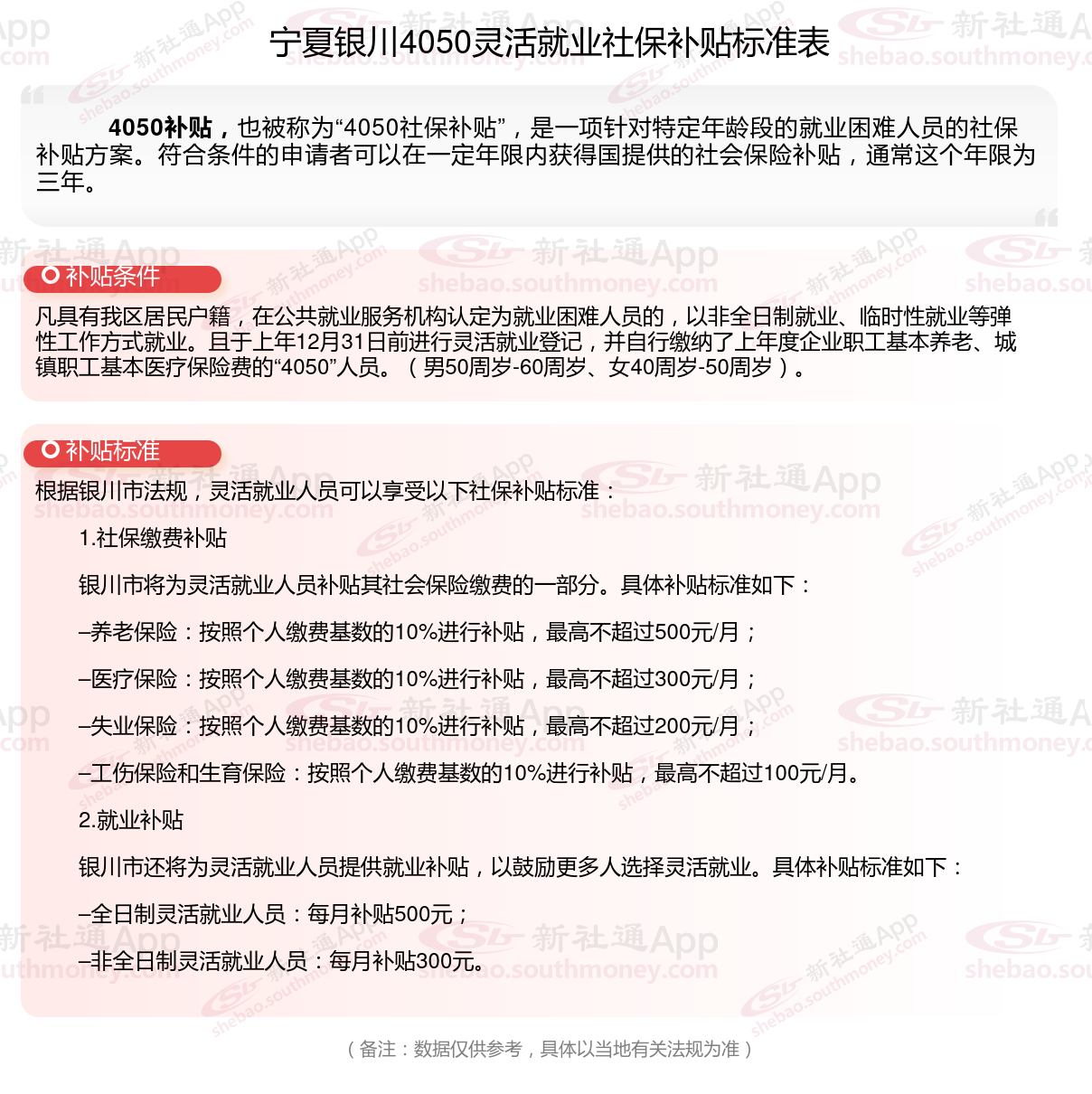 以上就是宁夏银川4050灵活就业社保补贴的相关内容,欢迎关注新社通/下载新社通APP了解更多五险一金专业资讯。