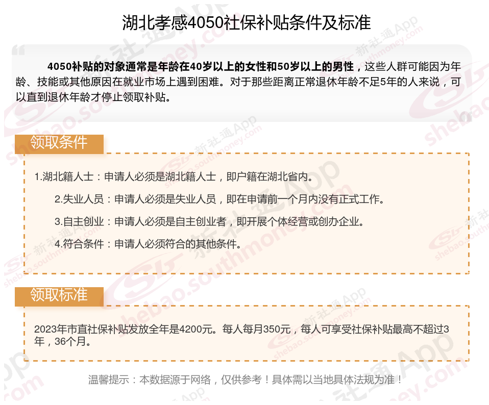二、湖北孝感4050社保补贴标准及条件2023-2024年