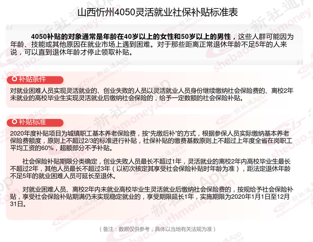 以上就是山西忻州4050灵活就业社保补贴的相关内容,欢迎关注新社通/下载新社通APP了解更多五险一金专业资讯。