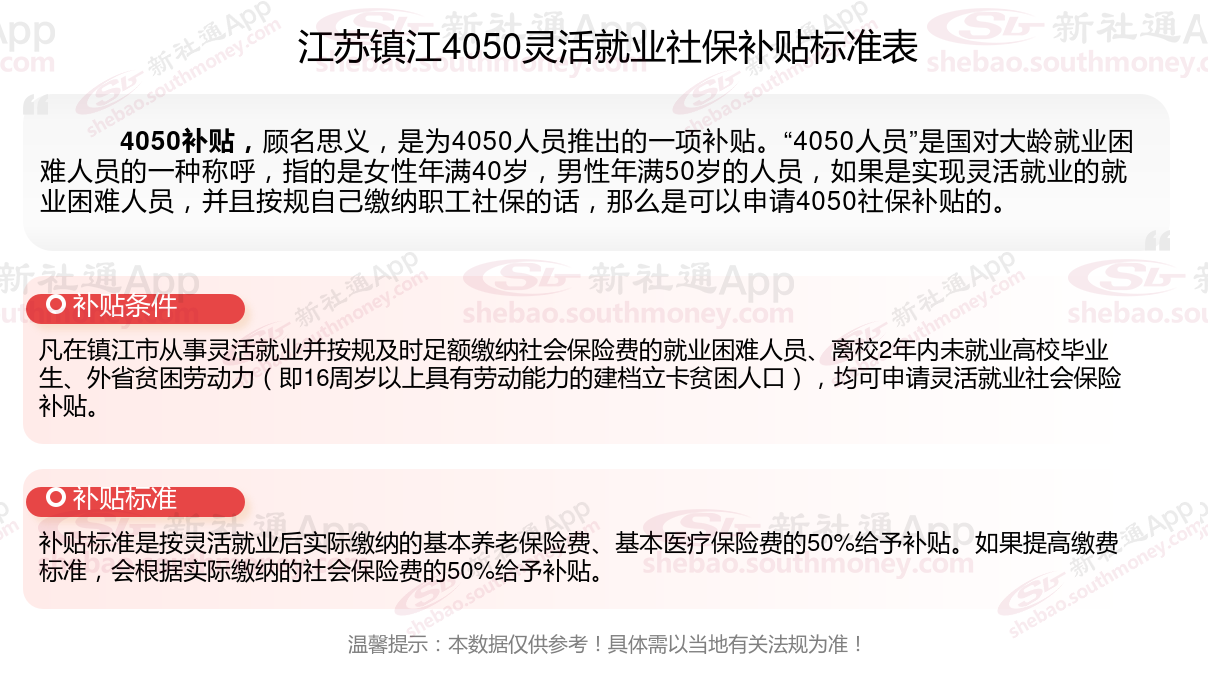 以上就是江苏镇江4050灵活就业社保补贴的相关内容,欢迎关注新社通/下载新社通APP了解更多五险一金专业资讯。