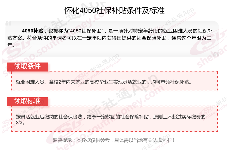 一、2023-2024年怀化4050社保补贴标准及条件,最新如下