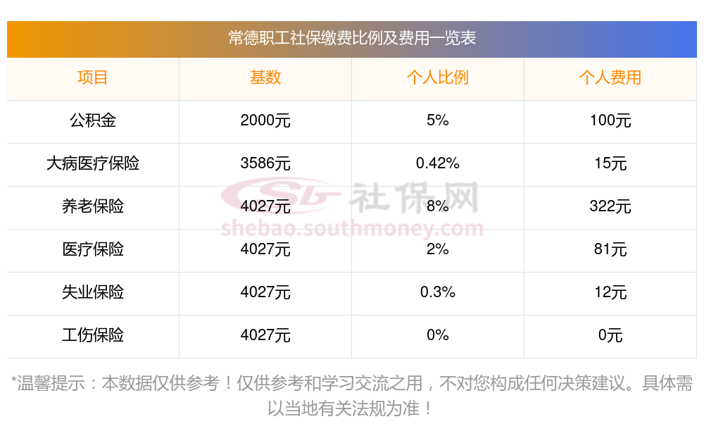 2024年常德社保缴费多少钱?下表是2023-2024年常德社保费用明细参考,如下: