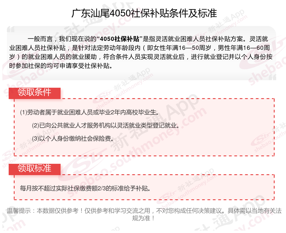 一、2023-2024年广东汕尾4050社保补贴标准,最新领取条件来了
