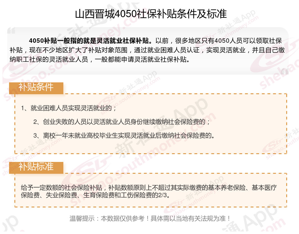 2024山西晋城灵活就业4050社保补贴是一项面向特定年龄段的就业困难人群的社会保险补贴。