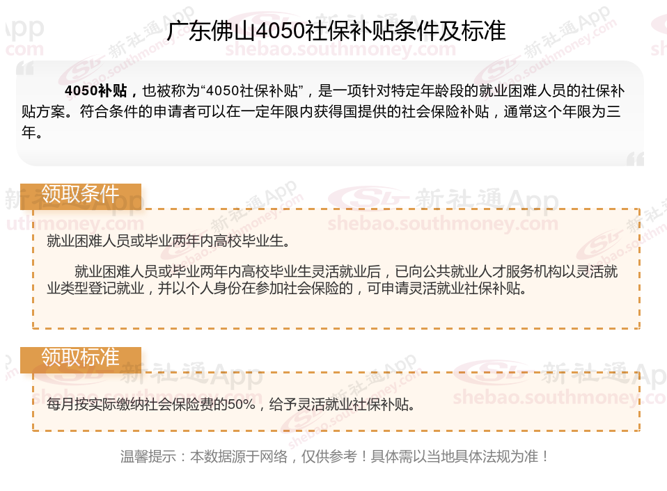 二、2023-2024年广东佛山4050社保补贴标准,最新领取条件来了