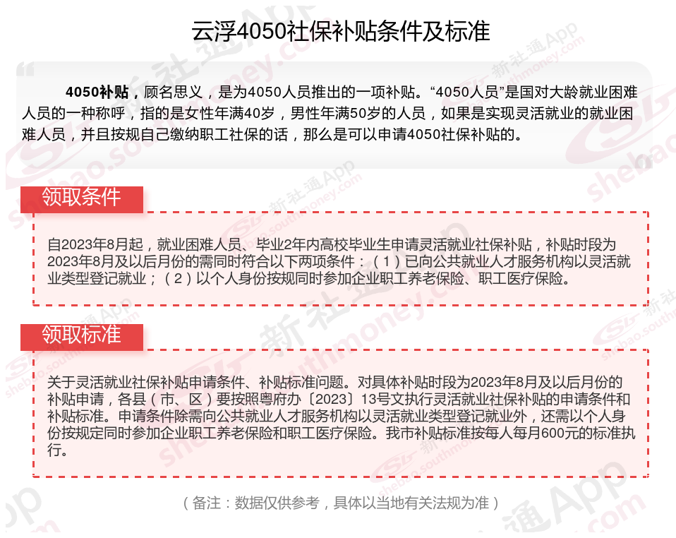 二、云浮4050社保补贴标准及条件2023-2024年,最新如下