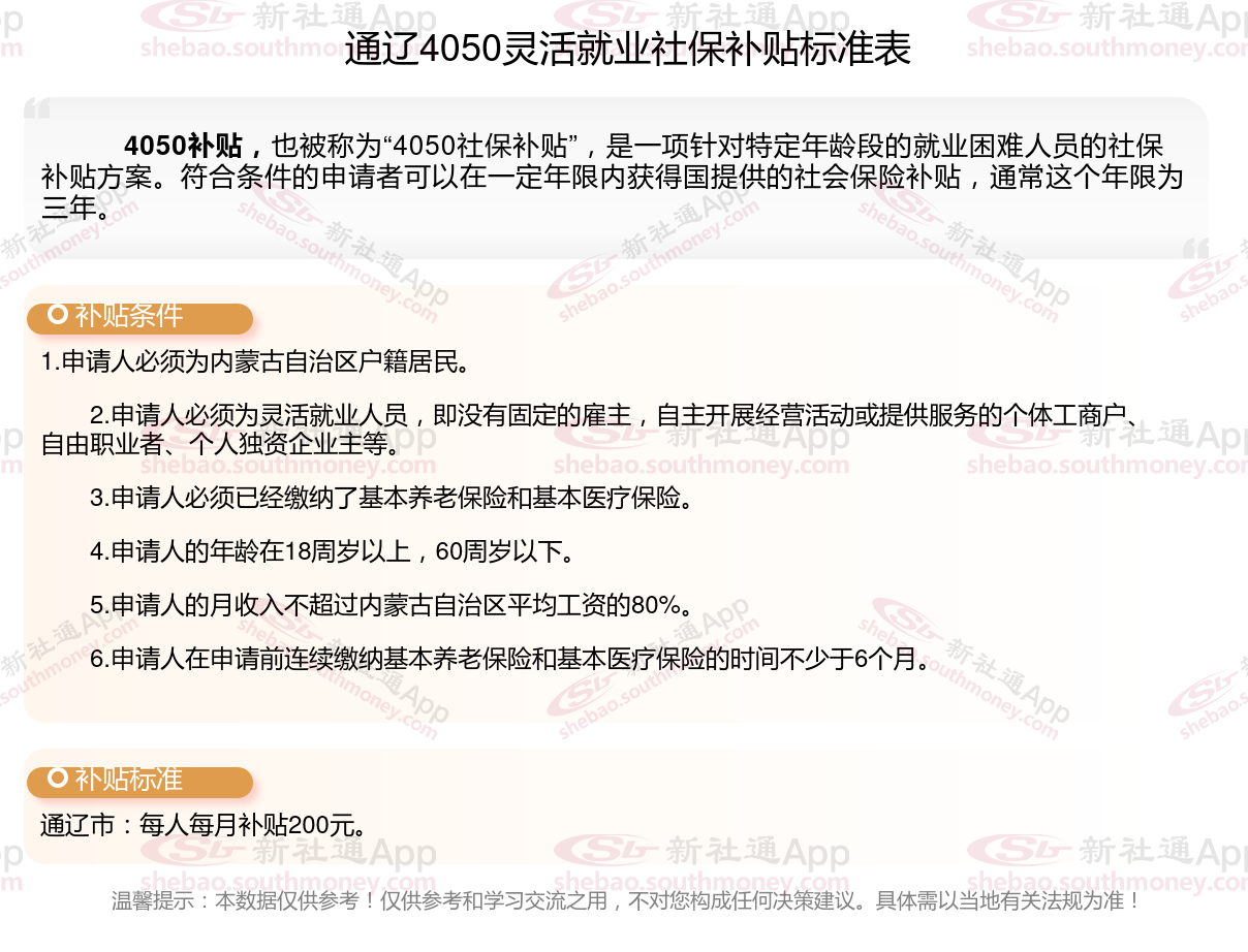 以上就是通辽4050灵活就业困难人员社保补贴的相关内容,欢迎关注新社通/下载新社通APP了解更多五险一金专业资讯。
