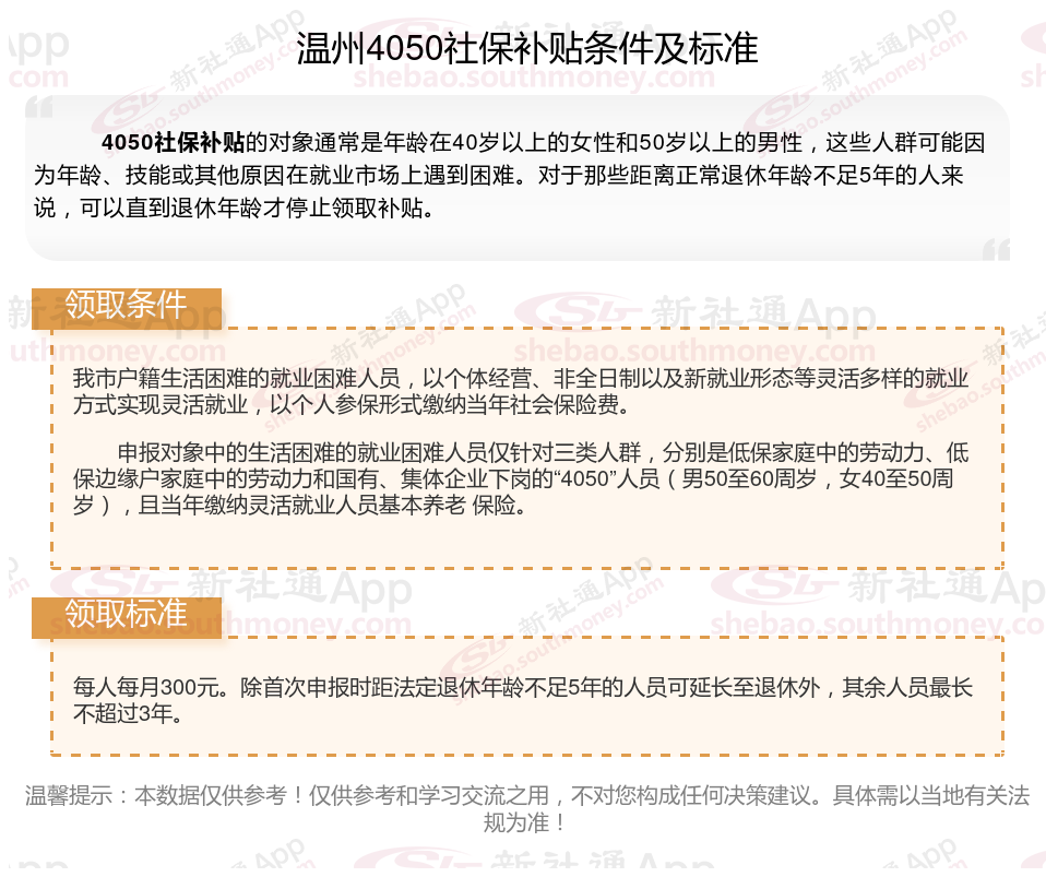 一、2023-2024年温州4050社保补贴标准及条件,最新如下