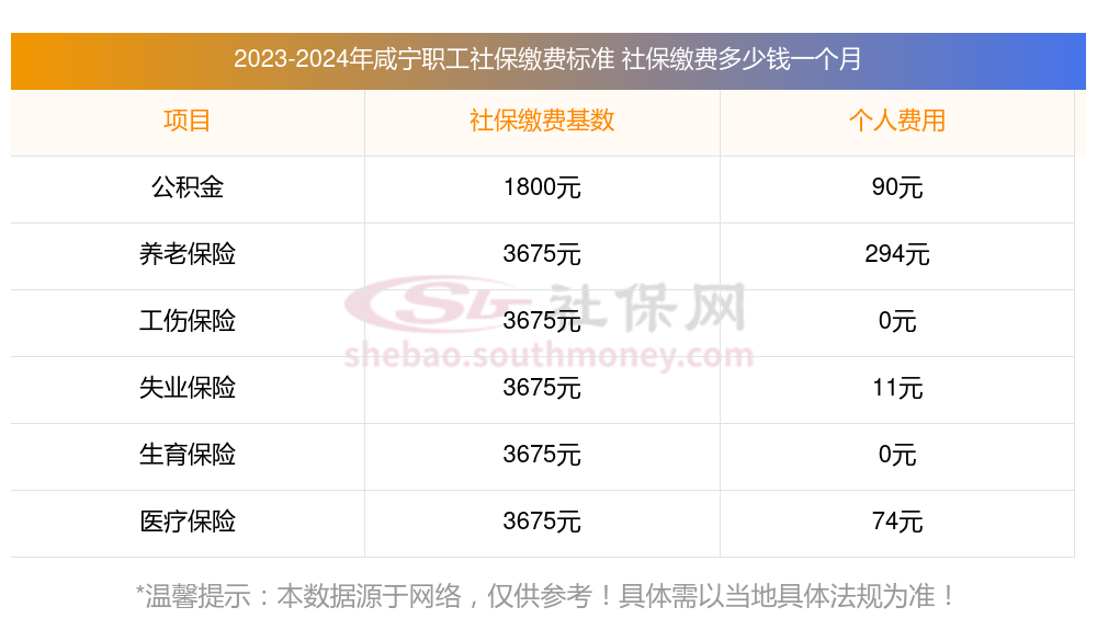 湖北咸宁缴费社保比例一览 社保公司和个人各交多少?下表是2023-2024年湖北咸宁社保费用明细参考,新社通app-社保缴费查询工具提供的最新数据如下: