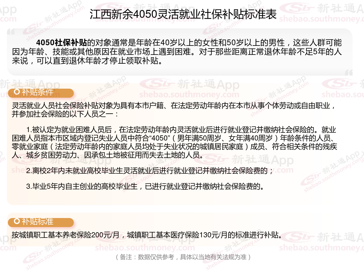 以上就是江西新余4050灵活就业社保补贴的相关内容,欢迎关注新社通/下载新社通APP了解更多五险一金专业资讯。