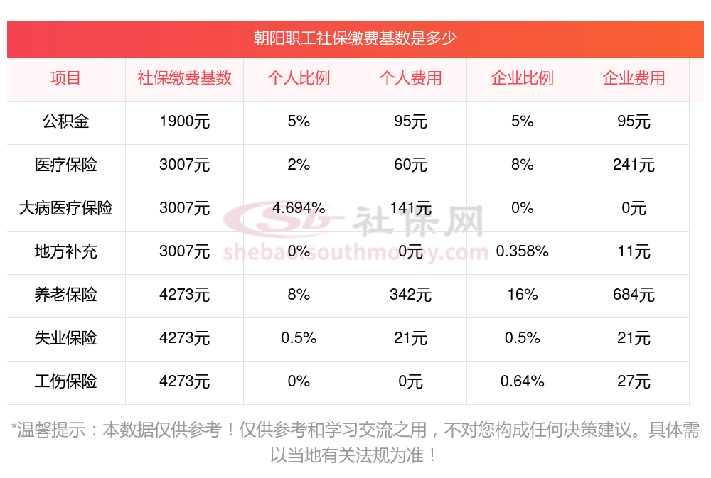 2024年朝阳社保缴费多少钱?下表是2023-2024年朝阳社保费用明细参考,新社通app-社保缴费查询工具提供的最新数据如下: