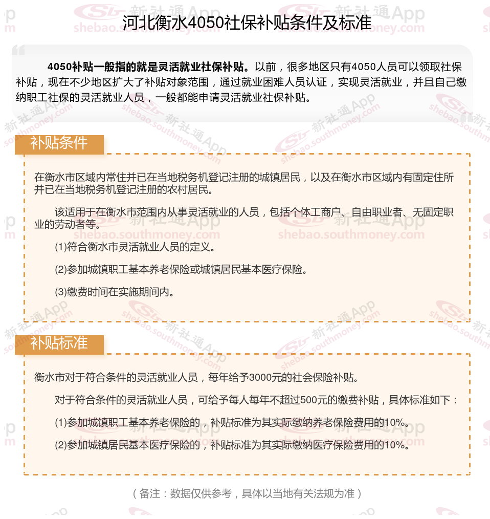 一、2023-2024年河北衡水4050社保补贴标准及条件,最新如下