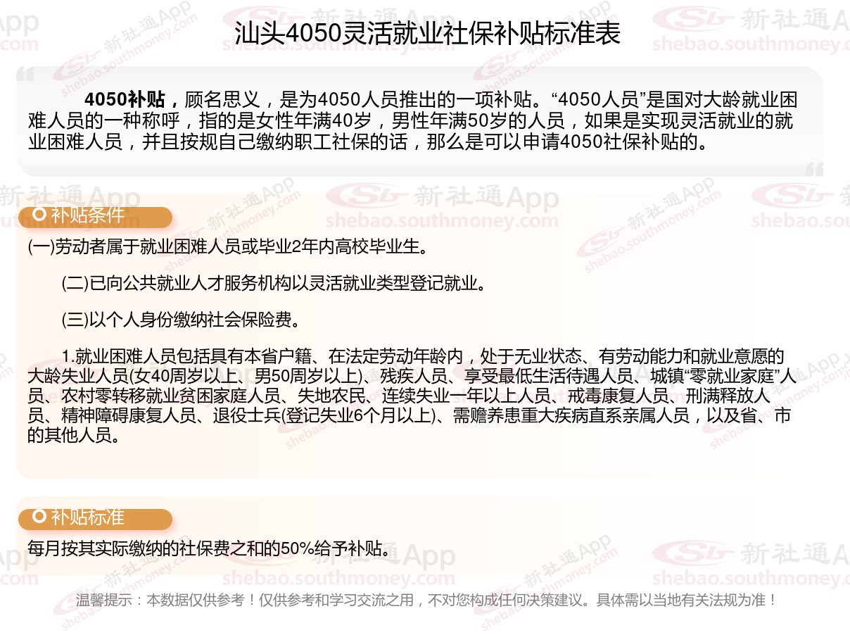 一、2023-2024年汕头4050社保补贴标准,最新领取条件来了