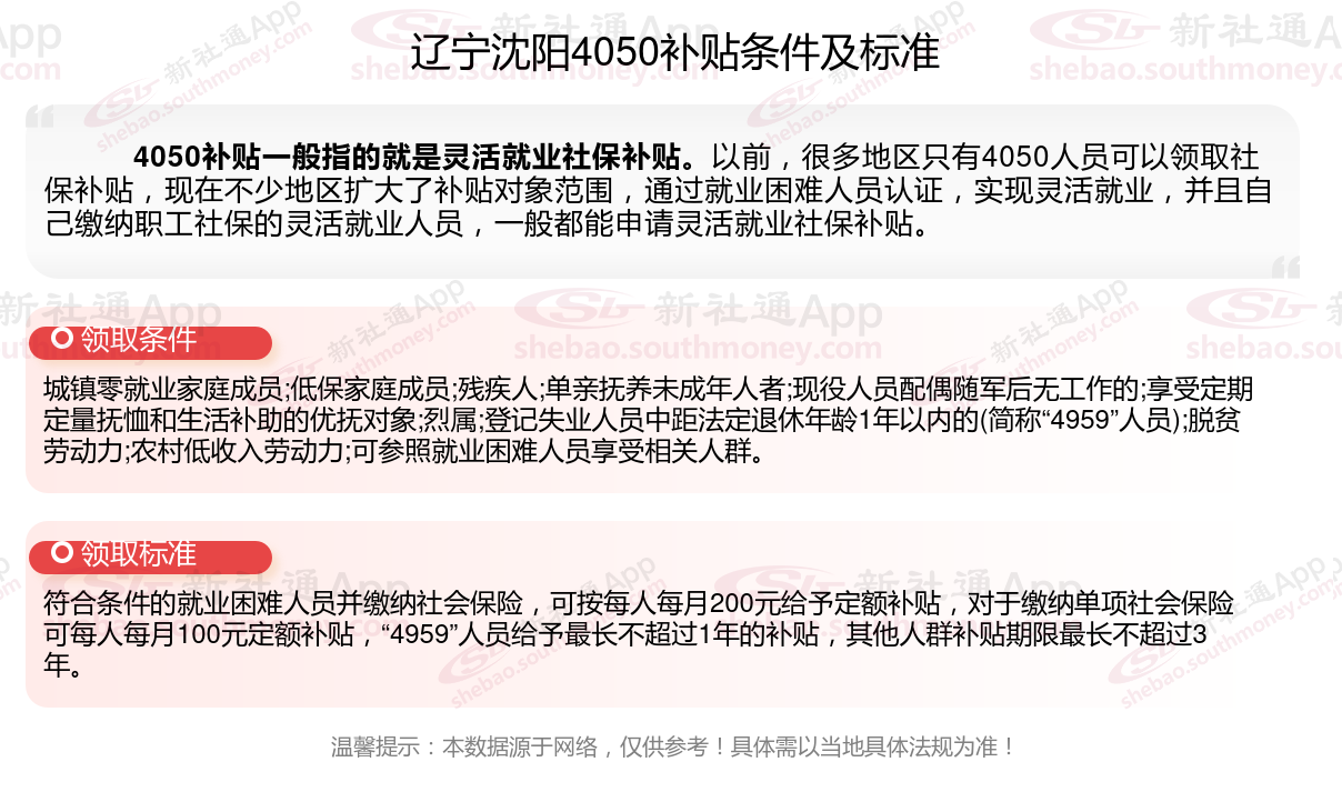 一、辽宁沈阳4050社保补贴标准及条件2023-2024年