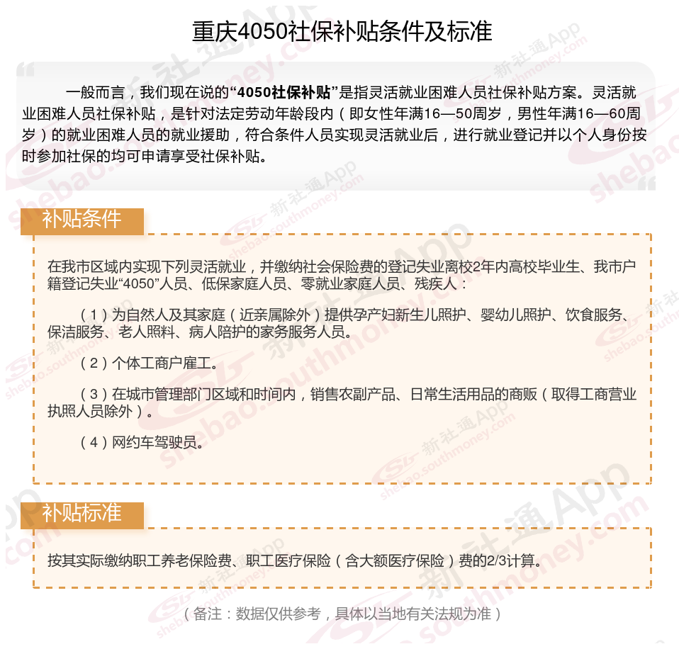 一、2023-2024年重庆4050社保补贴标准及条件,最新如下