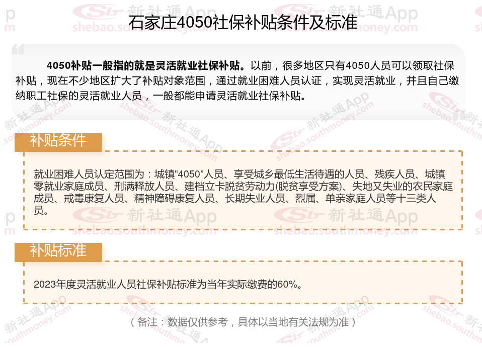 一、2023-2024年石家庄灵活就业4050社保补贴标准和条件是什么