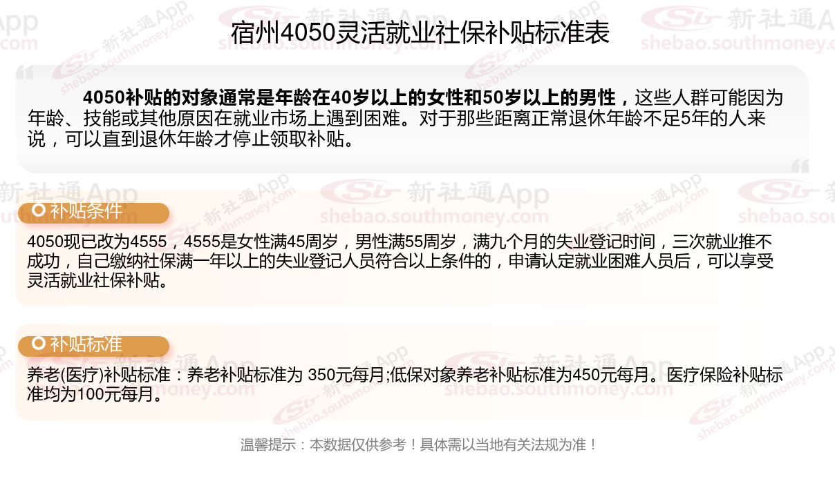 以上就是宿州4050灵活就业社保补贴的相关内容,欢迎关注新社通/下载新社通APP了解更多五险一金专业资讯。