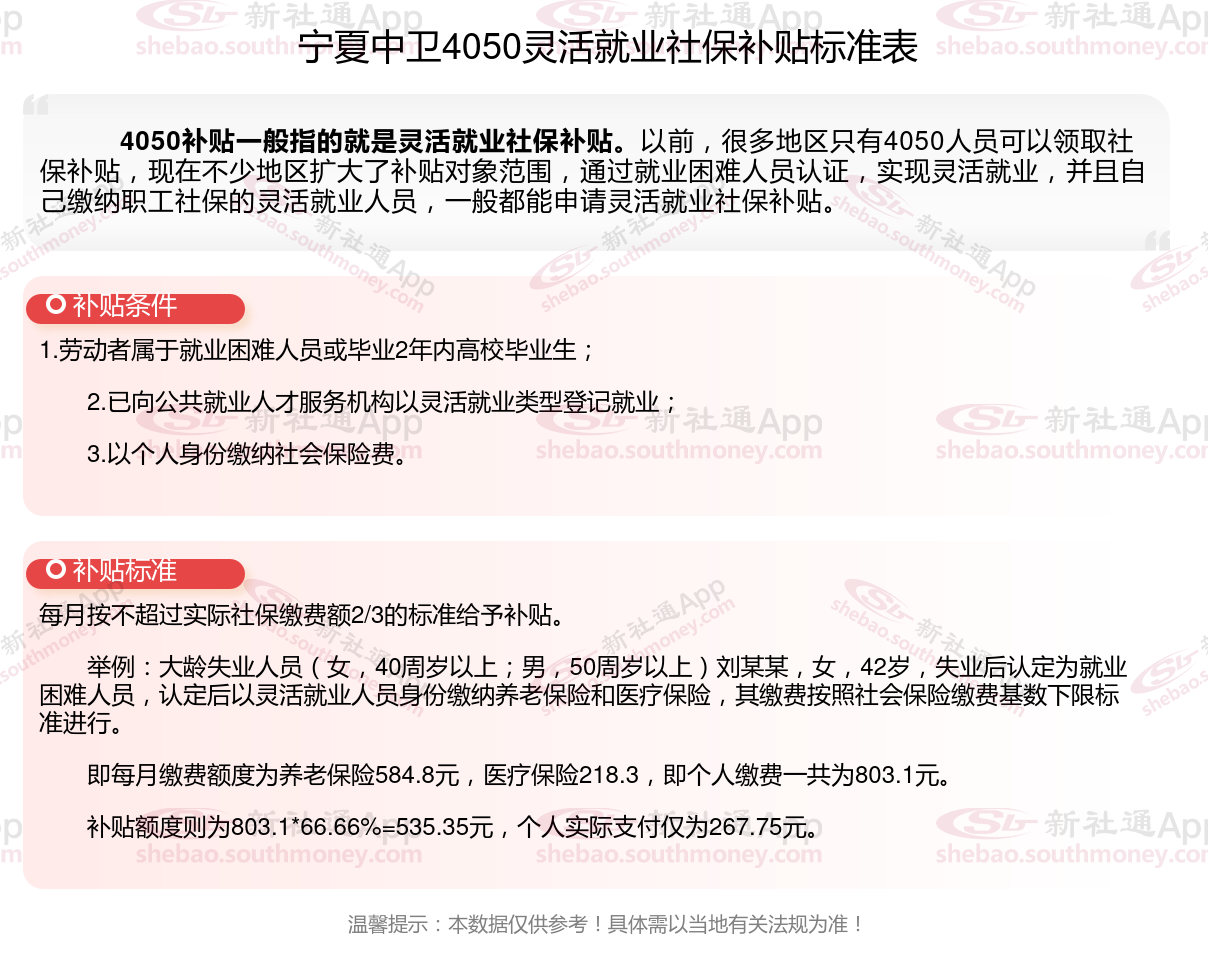 以上就是宁夏中卫4050灵活就业社保补贴的相关内容,欢迎关注新社通/下载新社通APP了解更多五险一金专业资讯。