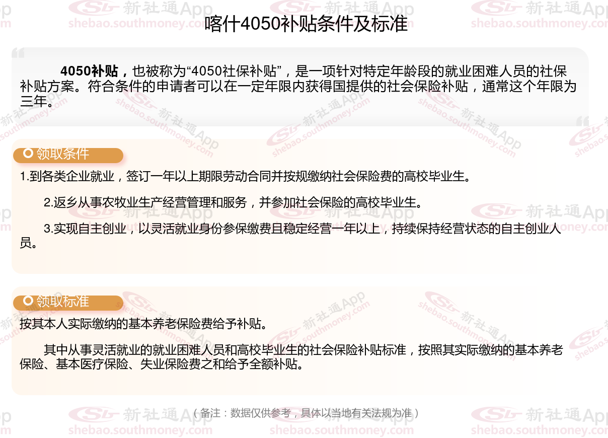 2025喀什灵活就业4050社保补贴是一项面向特定年龄段的就业困难人群的社会保险补贴。