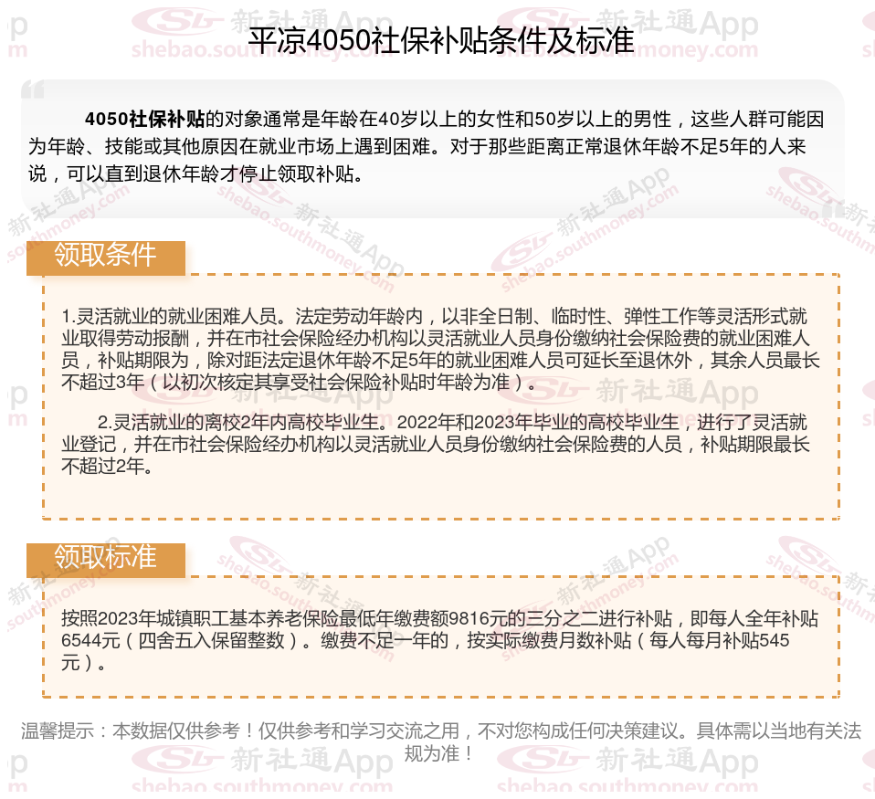 2025平凉灵活就业4050社保补贴是一项面向特定年龄段的就业困难人群的社会保险补贴。