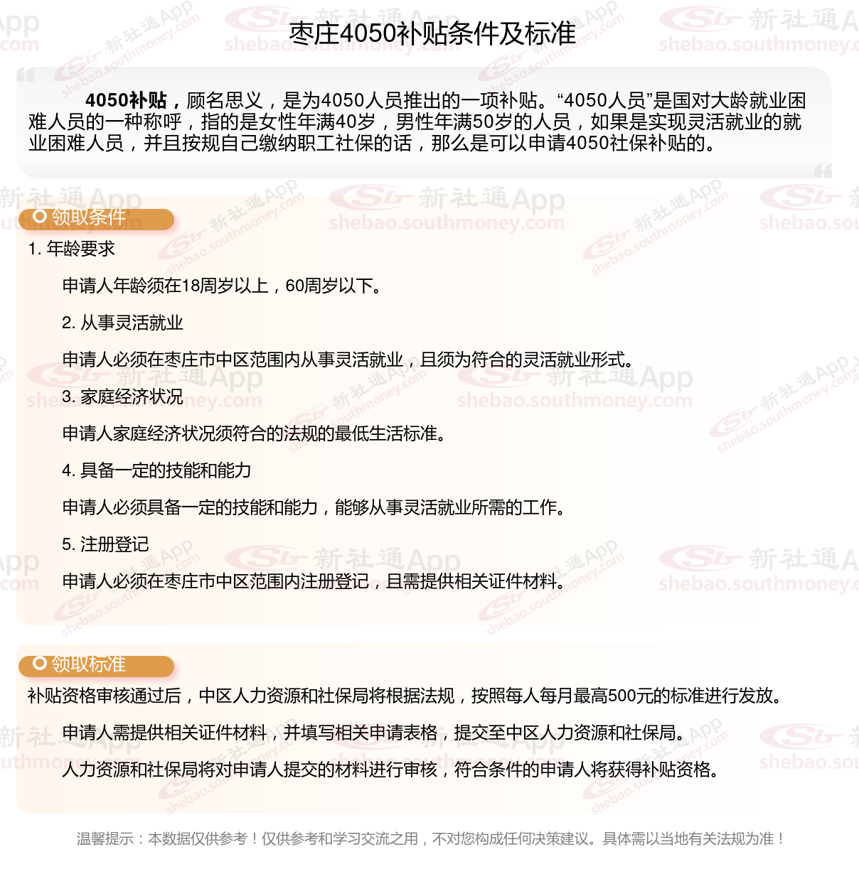 2025枣庄4050补贴主要针对的是年龄在40岁以上的女性和50岁以上的男性,这些人群通常因为年龄较大而面临就业困难。