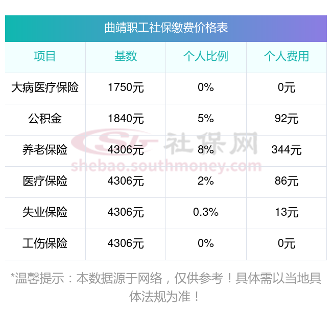 曲靖五险一金交多少钱一个月?下面和新社通一起来看看2024-2025年曲靖最低标准社保费用明细参考,新社通app-社保缴费查询工具提供的最新数据如下: