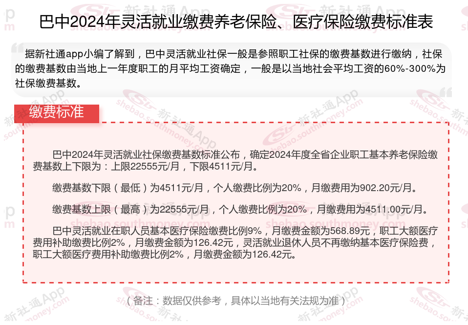 三、2024年巴中灵活就业社保缴费标准表 巴中灵活就业社保怎么交?