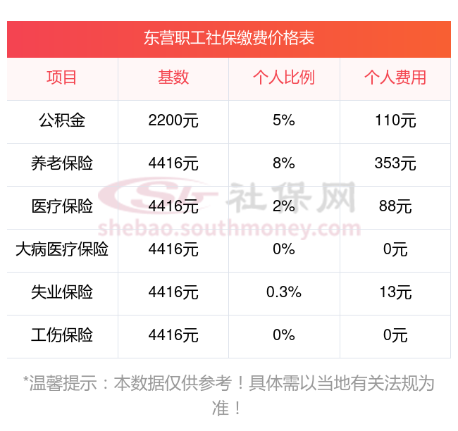 东营缴费社保比例一览 社保公司和个人各交多少?下表是2024-2025年东营社保费用明细参考,新社通app-社保缴费查询工具提供的最新数据如下: