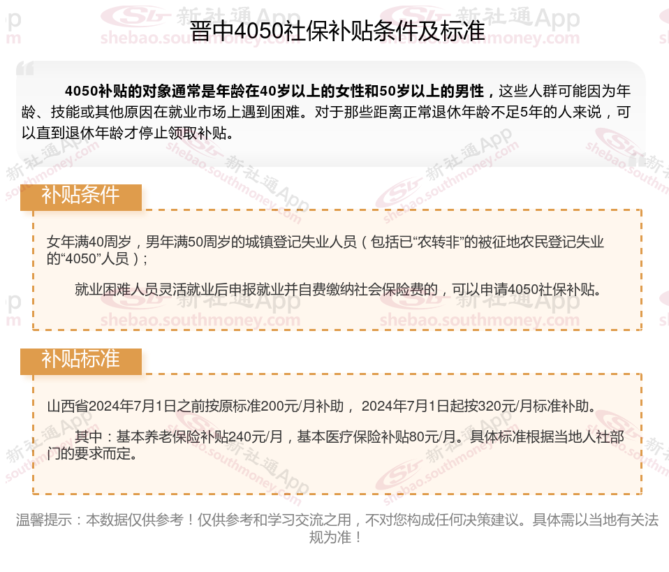 一、晋中4050社保补贴标准及条件2023-2024年