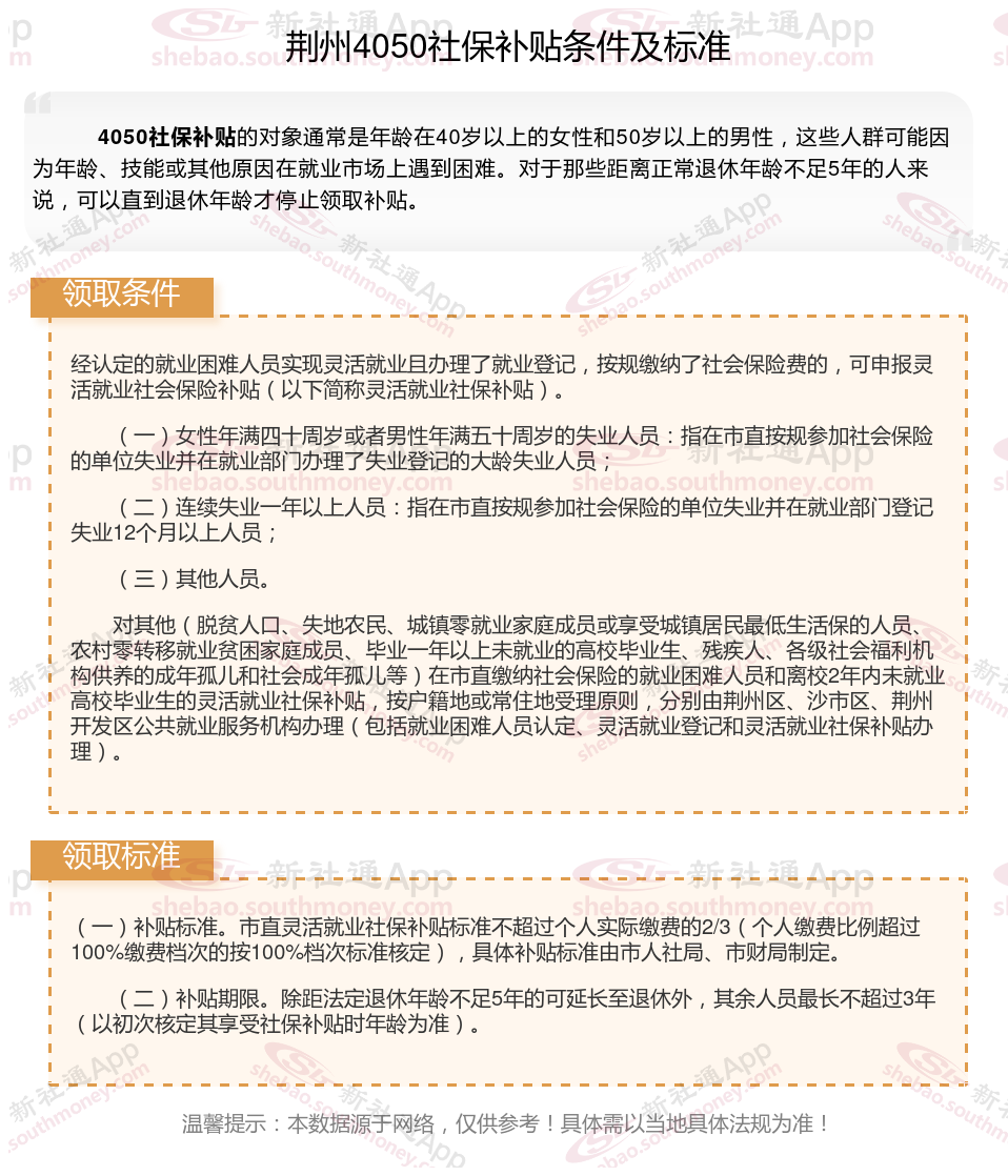 2025荆州4050补贴主要针对的是年龄在40岁以上的女性和50岁以上的男性,这些人群通常因为年龄较大而面临就业困难。