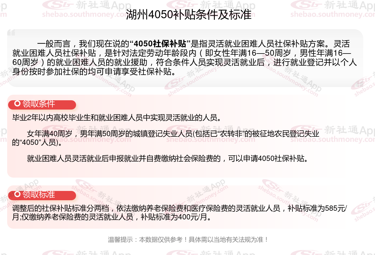 一、2023-2024年湖州4050社保补贴标准及条件,最新如下