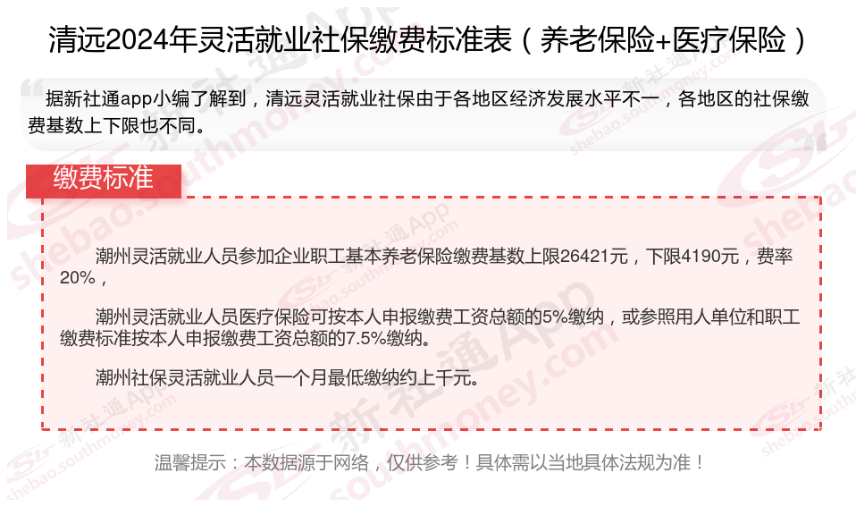 一、2024年清远灵活就业社保缴费标准表 清远灵活就业社保多少钱一个月?