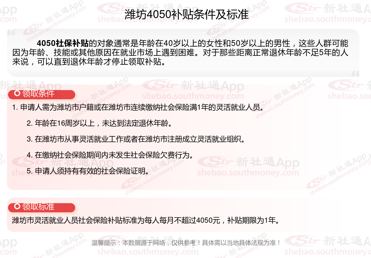一、潍坊4050社保补贴标准及条件2023-2024年