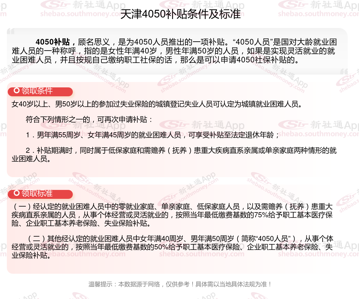 2025天津4050补贴主要针对的是年龄在40岁以上的女性和50岁以上的男性,这些人群通常因为年龄较大而面临就业困难。