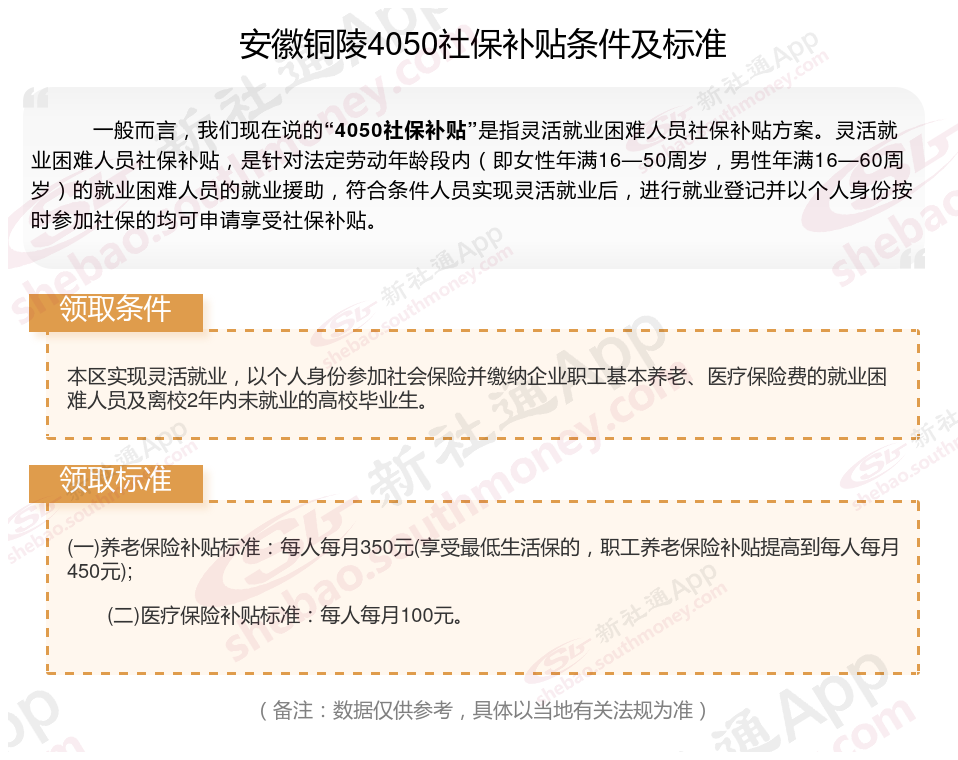 一、安徽铜陵4050社保补贴标准及条件2023-2024年